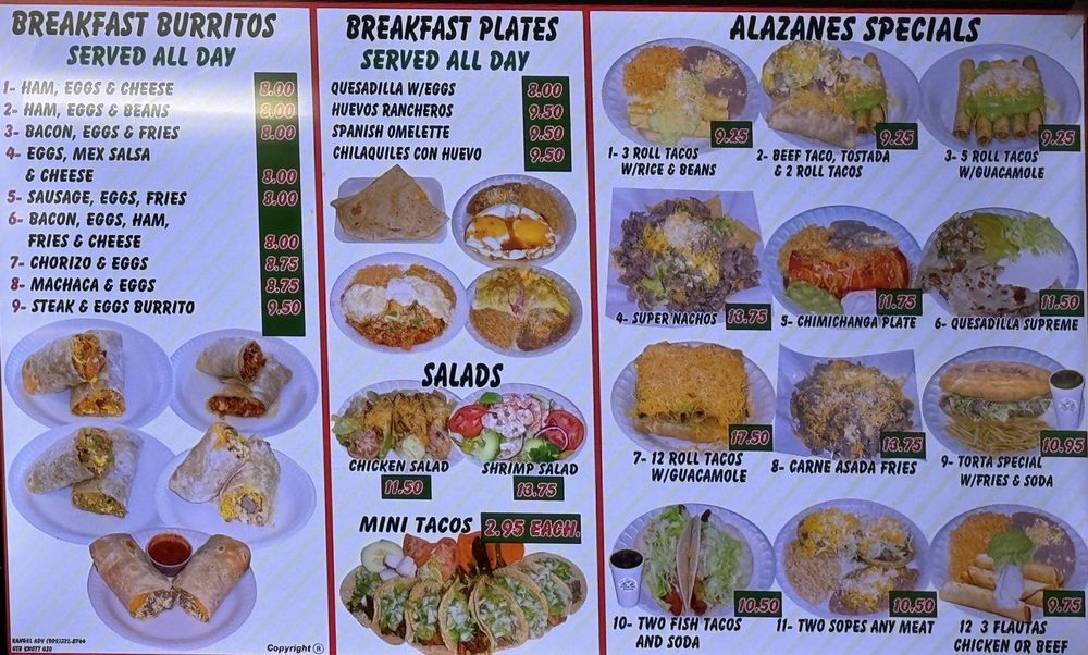 Introducing the menu at Los Alazanes, a Mexican restaurant located at 980 S Knott Ave in Anaheim, CA. This Latinx-owned establishment offers a variety of dishes, including breakfast burritos, rolled tacos, carne asada fries, and California burritos. Customers rave about the delicious and consistent food, with highlights such as tender lengua tacos, flavorful al pastor tacos, and bean and cheese burritos with the perfect balance of beans and cheese. The friendly staff, quick service, and affordable prices make this a go-to spot for comfort food any time of day or night. Don't forget to try the pickled jalapenos and carrots for an added kick of flavor. Los Alazanes also offers amenities such as outdoor seating, private dining, and catering services. Whether you're craving a quick snack or a full meal, Los Alazanes has something for everyone to enjoy.